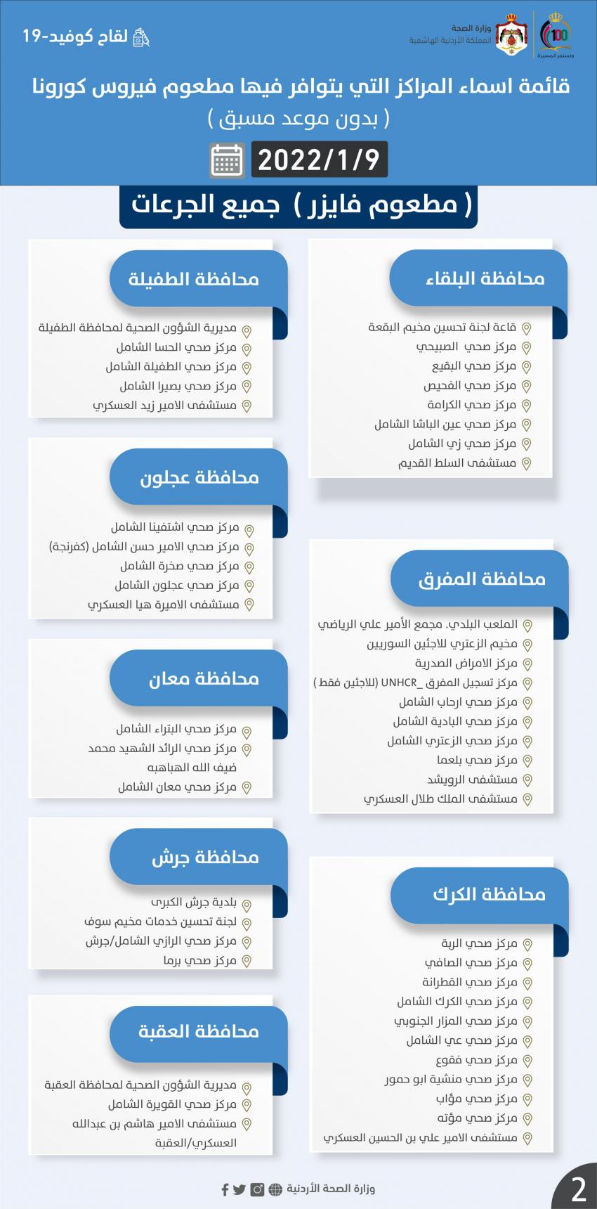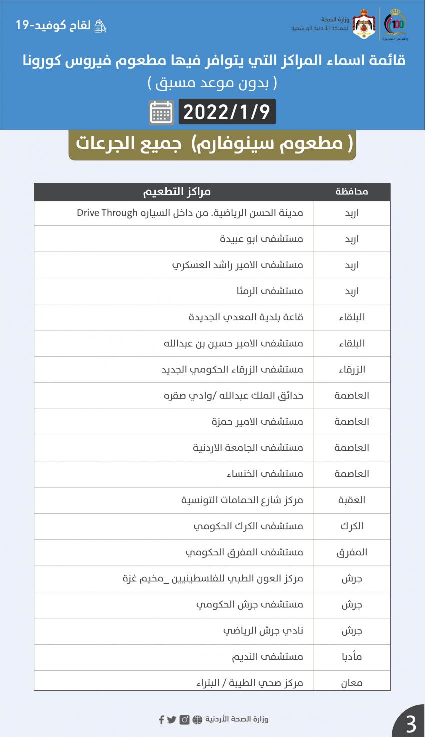 أعلنت وزارة الصحة مراكز لقاحات كورونا الأحد.