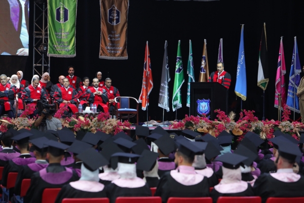 • ثم ألقى كلمة الجامعة عميد شؤون الطلبة الدكتور مصطفى عطيات رحب فيها بعطوفة راعي الحفل الاستاذ الدكتور ساري حمدان و عطوفة نائب رئيس هيئة المديرين الاستاذ عمر الحوراني، وبأعضاء مجلس أمناء الجامعة والسادة العمداء وأعضاء الهيئتين التدريسية والادارية والطلبة الخريجين وذويهم .