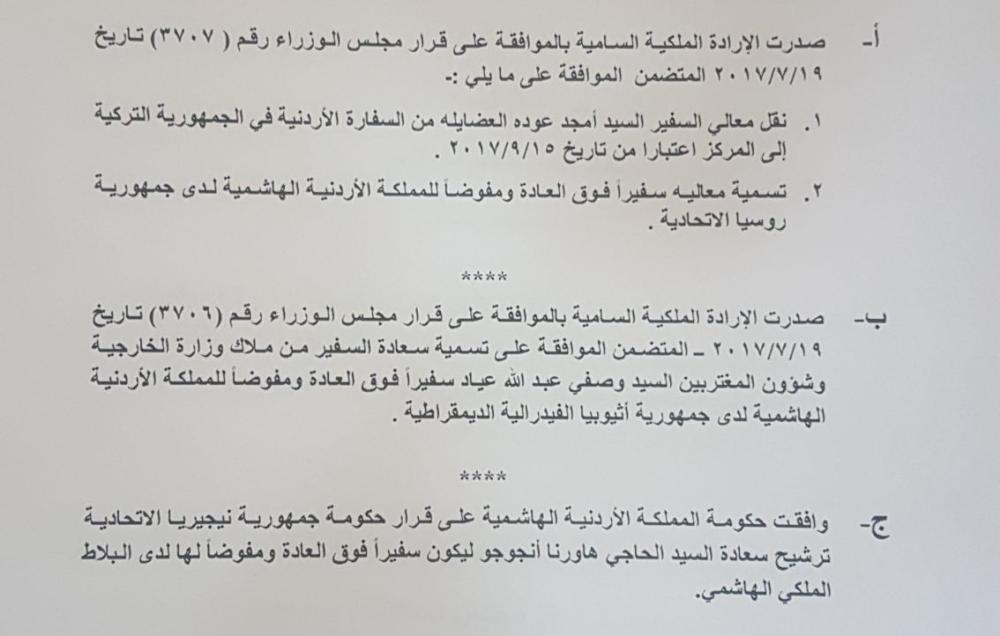 ارادة ملكية سامية بتنقلات في وزارة الخارجية - اسماء