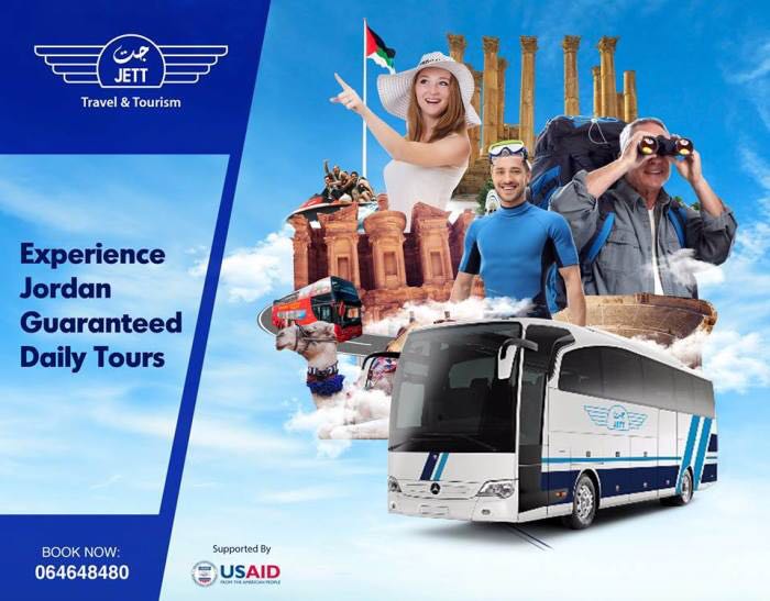 وقال حداد إن جت للسياحة والسفر تدشن حاليا رحلات منتظمة للبحر الميت والبترا والمغطس ومادبا وعجلون وجرش .