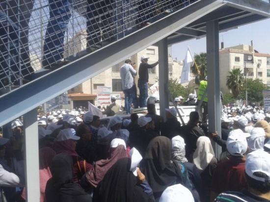 وافد آلاف المعلمين من مختلف المحافظات للمشاركة في الاعتصام الحاشد أمام ديوان الخدمة المدنية رفضا للتعديلات الجديدة على نظام الخدمة المدنية والمطالبة بإقالة رئيس ديوان الخدمة المدنية الدكتور خلف هميسات، والغاء تعديلات نظام الخدمة.